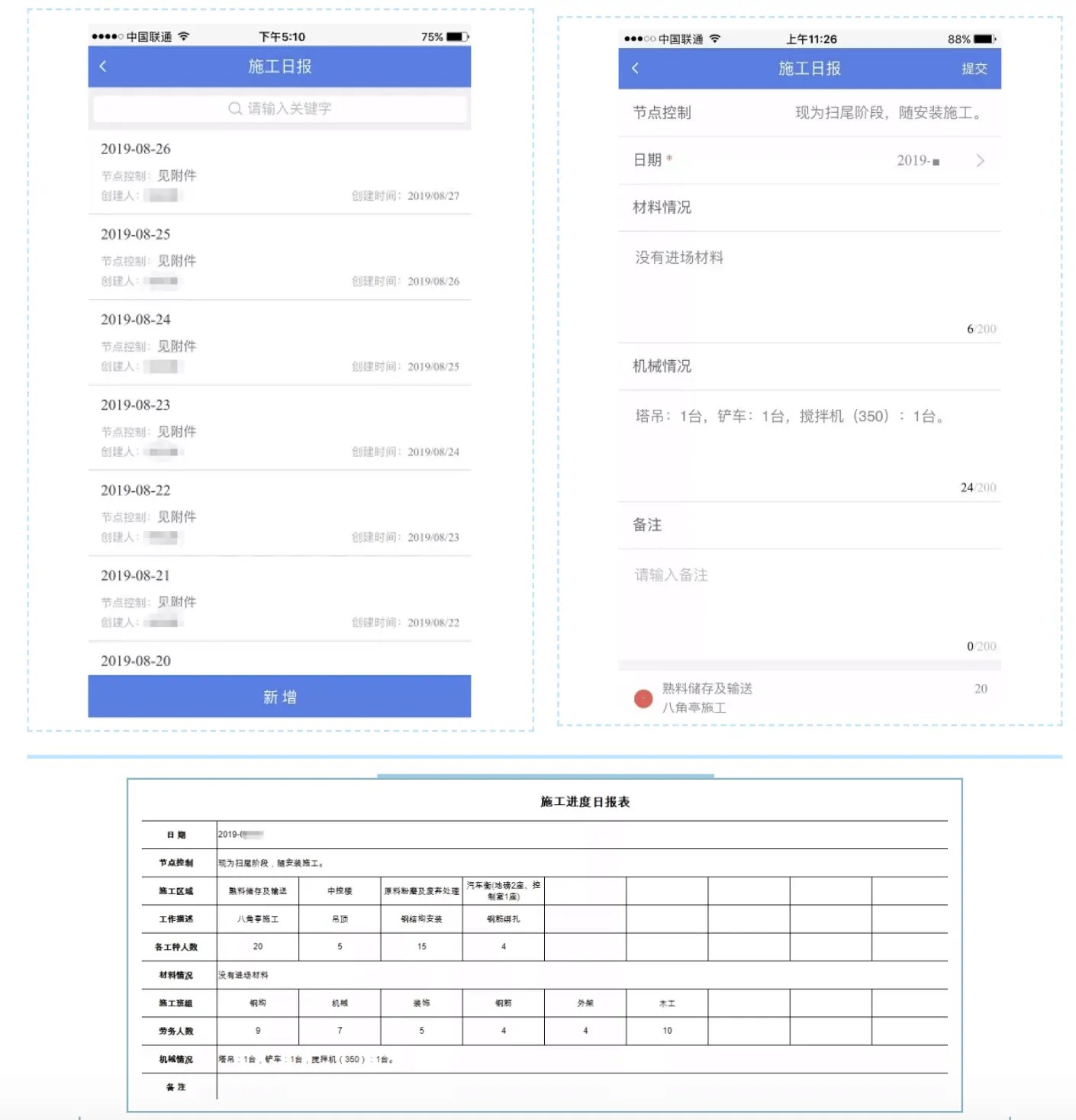 施工日報、施工週報、項目晨會